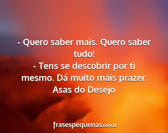 - Tens se descobrir por ti mesmo. Dá muito mais prazer.Asas do Desejo