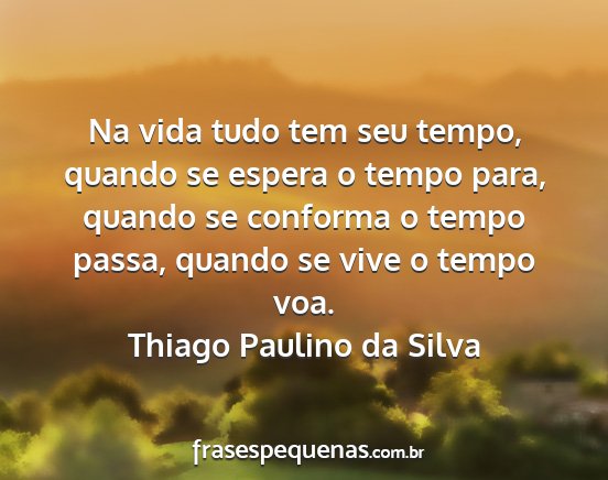 Na vida tudo tem seu tempo, quando se espera o tempo para, quando se conforma o tempo passa, quando se vive o tempo voa.Thiago Paulino da Silva
