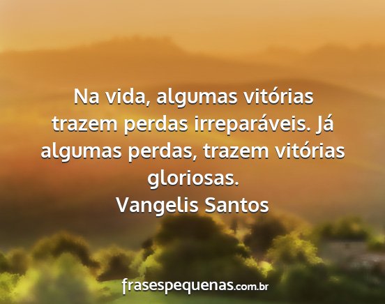 Na vida, algumas vitórias trazem perdas irreparáveis. Já algumas perdas, trazem vitórias gloriosas.Vangelis Santos
