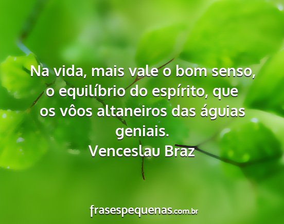Na vida, mais vale o bom senso, o equilíbrio do espírito, que os vôos altaneiros das águias geniais.Venceslau Braz