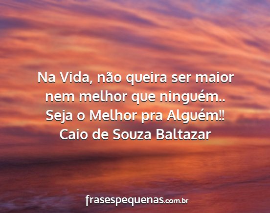 Na Vida, não queira ser maior nem melhor que ninguém..Seja o Melhor pra Alguém!!Caio de Souza Baltazar