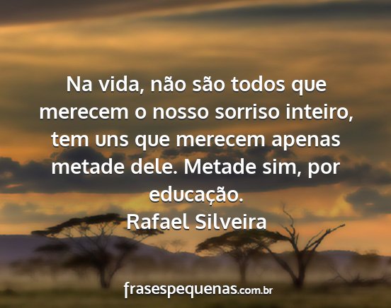 Na vida, não são todos que merecem o nosso sorriso inteiro, tem uns que merecem apenas metade dele. Metade sim, por educação.Rafael Silveira