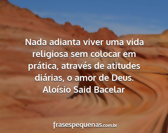 Nada adianta viver uma vida religiosa sem colocar em prática, através de atitudes diárias, o amor de Deus.Aloísio Said Bacelar