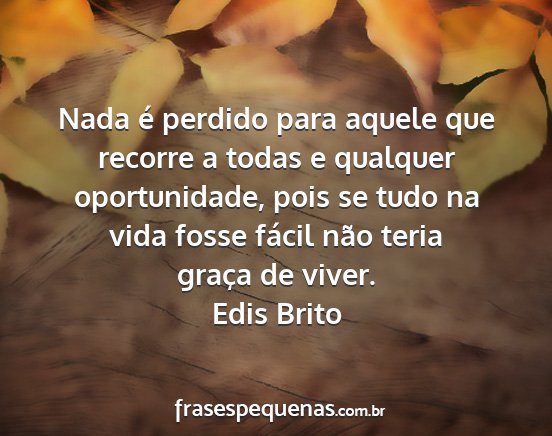 Nada é perdido para aquele que recorre a todas e qualquer oportunidade, pois se tudo na vida fosse fácil não teria graça de viver.Edis Brito