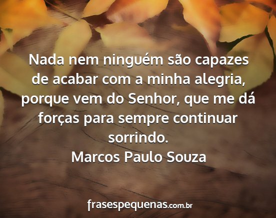 Nada nem ninguém são capazes de acabar com a minha alegria, porque vem do Senhor, que me dá forças para sempre continuar sorrindo.Marcos Paulo Souza