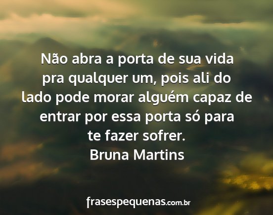 Não abra a porta de sua vida pra qualquer um, pois ali do lado pode morar alguém capaz de entrar por essa porta só para te fazer sofrer.Bruna Martins