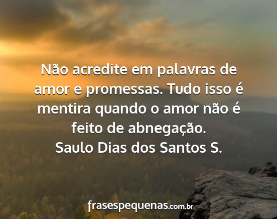 Não acredite em palavras de amor e promessas. Tudo isso é mentira quando o amor não é feito de abnegação.Saulo Dias dos Santos S.