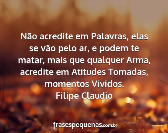 Não acredite em Palavras, elas se vão pelo ar, e podem te matar, mais que qualquer Arma, acredite em Atitudes Tomadas, momentos Vividos.Filipe Claudio