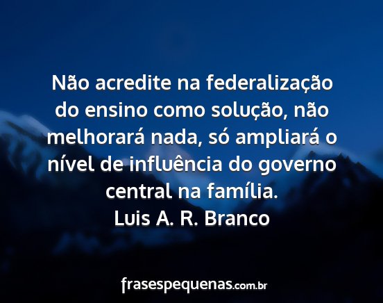 Não acredite na federalização do ensino como solução, não melhorará nada, só ampliará o nível de influência do governo central na família.Luis A. R. Branco