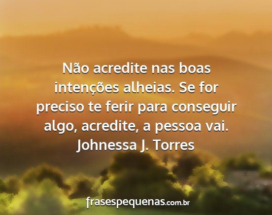 Não acredite nas boas intenções alheias. Se for preciso te ferir para conseguir algo, acredite, a pessoa vai.Johnessa J. Torres