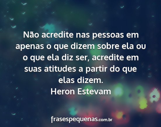 Não acredite nas pessoas em apenas o que dizem sobre ela ou o que ela diz ser, acredite em suas atitudes a partir do que elas dizem.Heron Estevam