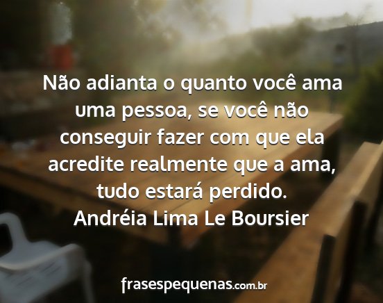Não adianta o quanto você ama uma pessoa, se você não conseguir fazer com que ela acredite realmente que a ama, tudo estará perdido.Andréia Lima Le Boursier