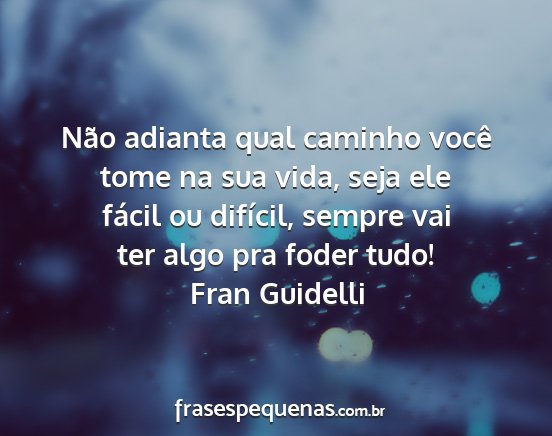 Não adianta qual caminho você tome na sua vida, seja ele fácil ou difícil, sempre vai ter algo pra foder tudo!Fran Guidelli