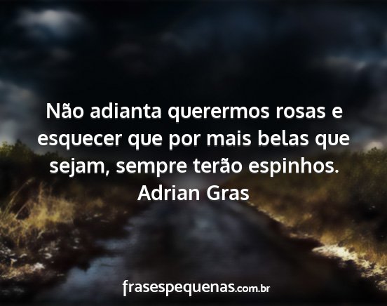 Não adianta querermos rosas e esquecer que por mais belas que sejam, sempre terão espinhos.Adrian Gras