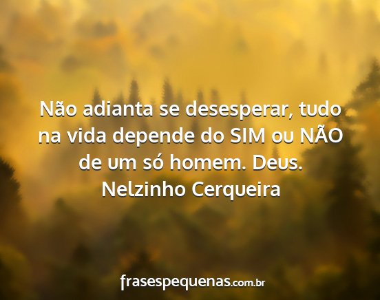 Não adianta se desesperar, tudo na vida depende do SIM ou NÃO de um só homem. Deus.Nelzinho Cerqueira