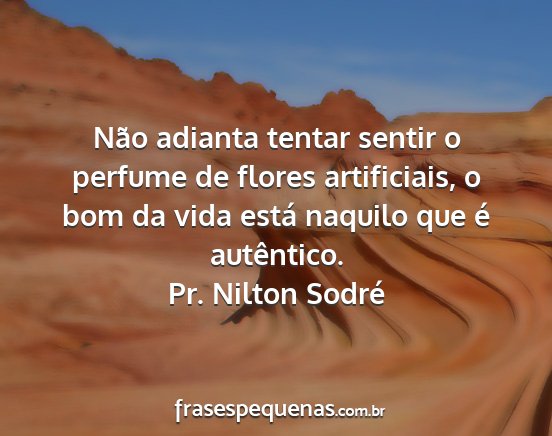 Não adianta tentar sentir o perfume de flores artificiais, o bom da vida está naquilo que é autêntico.Pr. Nilton Sodré