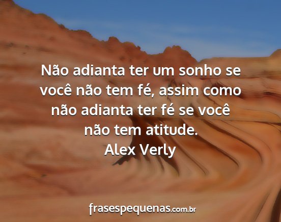 Não adianta ter um sonho se você não tem fé, assim como não adianta ter fé se você não tem atitude.Alex Verly
