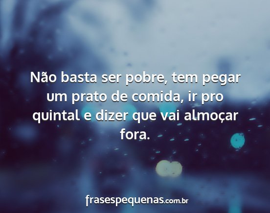 Não basta ser pobre, tem pegar um prato de comida, ir pro quintal e dizer que vai almoçar fora.