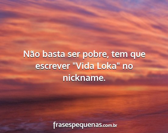 Não basta ser pobre, tem que escrever "Vida Loka" no nickname.