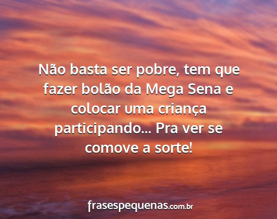 Não basta ser pobre, tem que fazer bolão da Mega Sena e colocar uma criança participando... Pra ver se comove a sorte!