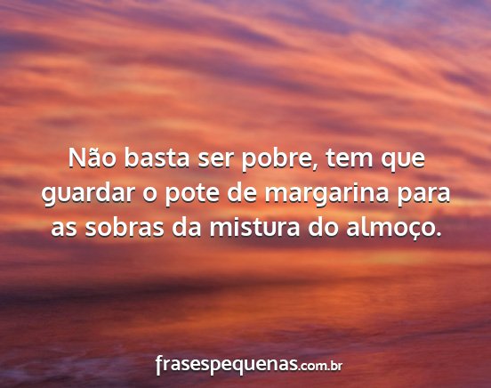 Não basta ser pobre, tem que guardar o...