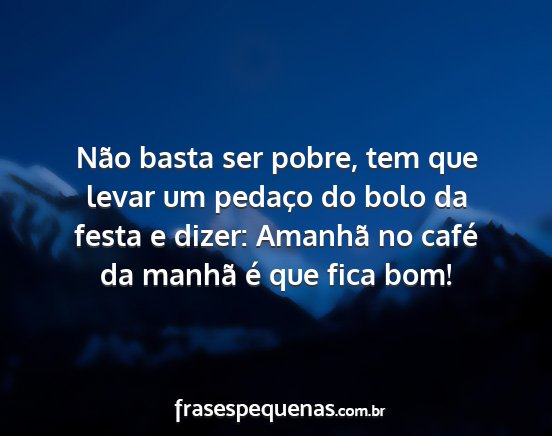 Não basta ser pobre, tem que levar um pedaço do bolo da festa e dizer: Amanhã no café da manhã é que fica bom!