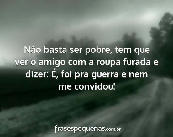 Não basta ser pobre, tem que ver o amigo com a roupa furada e dizer: É, foi pra guerra e nem me convidou!