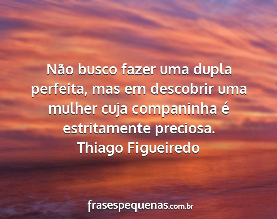 Não busco fazer uma dupla perfeita, mas em descobrir uma mulher cuja companinha é estritamente preciosa.Thiago Figueiredo