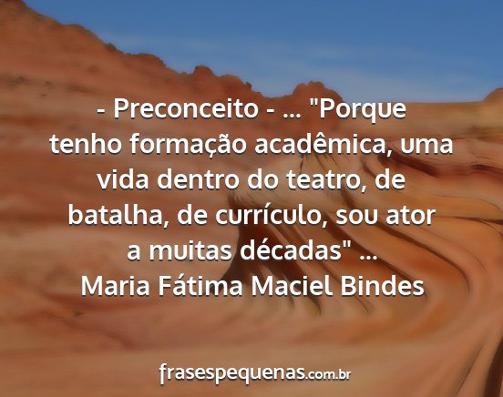 - Preconceito - ... "Porque tenho formação acadêmica, uma vida dentro do teatro, de batalha, de currículo, sou ator a muitas décadas" ...Maria Fátima Maciel Bindes