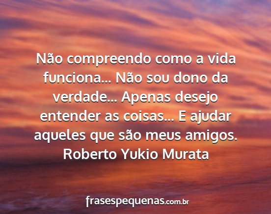 Não compreendo como a vida funciona... Não sou dono da verdade... Apenas desejo entender as coisas... E ajudar aqueles que são meus amigos.Roberto Yukio Murata