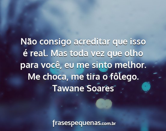 Não consigo acreditar que isso é real. Mas toda vez que olho para você, eu me sinto melhor. Me choca, me tira o fôlego.Tawane Soares