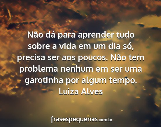 Não dá para aprender tudo sobre a vida em um dia só, precisa ser aos poucos. Não tem problema nenhum em ser uma garotinha por algum tempo.Luiza Alves