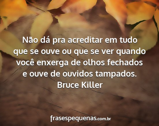 Não dá pra acreditar em tudo que se ouve ou que se ver quando você enxerga de olhos fechados e ouve de ouvidos tampados.Bruce Killer