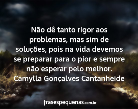 Não dê tanto rigor aos problemas, mas sim de soluções, pois na vida devemos se preparar para o pior e sempre não esperar pelo melhor.Camylla Gonçalves Cantanheide