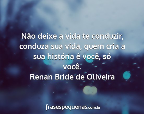 Não deixe a vida te conduzir, conduza sua vida, quem cria a sua história é você, só você.Renan Bride de Oliveira