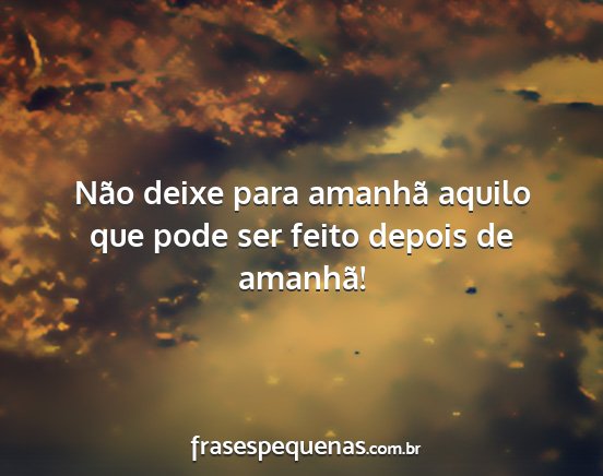 Não deixe para amanhã aquilo que pode ser feito depois de amanhã!