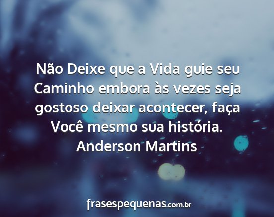 Não Deixe que a Vida guie seu Caminho embora às vezes seja gostoso deixar acontecer, faça Você mesmo sua história.Anderson Martins