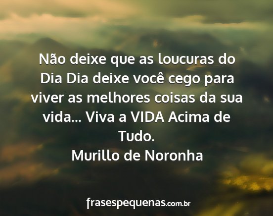 Não deixe que as loucuras do Dia Dia deixe você cego para viver as melhores coisas da sua vida... Viva a VIDA Acima de Tudo.Murillo de Noronha