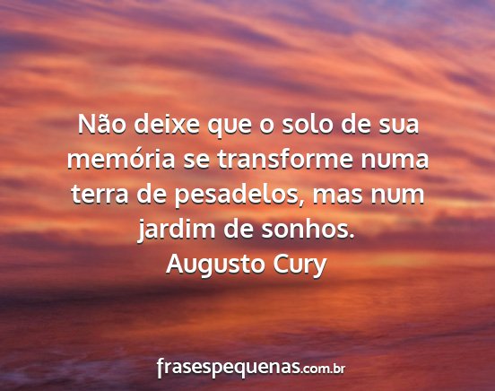 Não deixe que o solo de sua memória se transforme numa terra de pesadelos, mas num jardim de sonhos.Augusto Cury