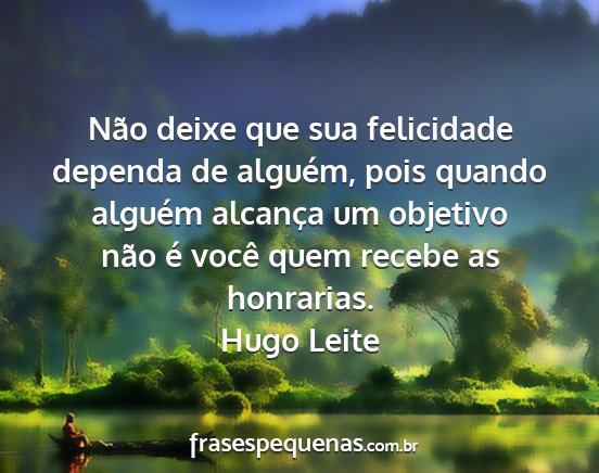 Não deixe que sua felicidade dependa de alguém, pois quando alguém alcança um objetivo não é você quem recebe as honrarias.Hugo Leite