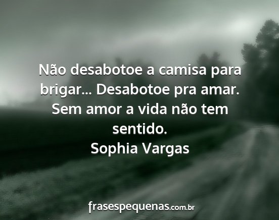 Não desabotoe a camisa para brigar... Desabotoe pra amar. Sem amor a vida não tem sentido.Sophia Vargas