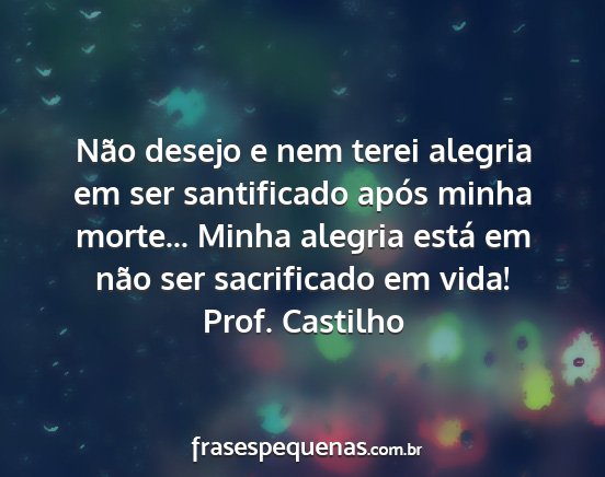 Não desejo e nem terei alegria em ser santificado após minha morte... Minha alegria está em não ser sacrificado em vida!Prof. Castilho