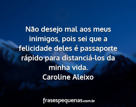 Não desejo mal aos meus inimigos, pois sei que a felicidade deles é passaporte rápido para distanciá-los da minha vida.Caroline Aleixo