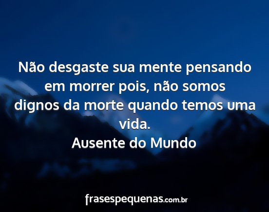Não desgaste sua mente pensando em morrer pois, não somos dignos da morte quando temos uma vida.Ausente do Mundo