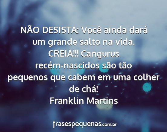 NÃO DESISTA: Você ainda dará um grande salto na vida. CREIA!!! Cangurus recém-nascidos são tão pequenos que cabem em uma colher de chá!Franklin Martins