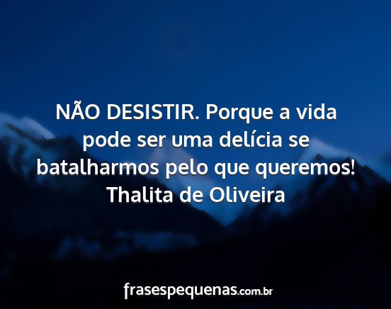 NÃO DESISTIR. Porque a vida pode ser uma delícia se batalharmos pelo que queremos!Thalita de Oliveira