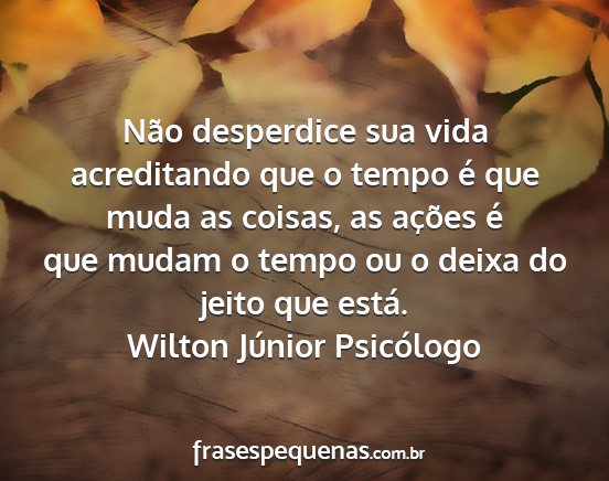 Não desperdice sua vida acreditando que o tempo é que muda as coisas, as ações é que mudam o tempo ou o deixa do jeito que está.Wilton Júnior Psicólogo
