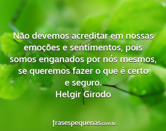 Não devemos acreditar em nossas emoções e sentimentos, pois somos enganados por nós mesmos, se queremos fazer o que é certo e seguro.Helgir Girodo