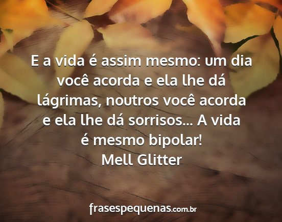 E a vida é assim mesmo: um dia você acorda e ela lhe dá lágrimas, noutros você acorda e ela lhe dá sorrisos... A vida é mesmo bipolar!Mell Glitter