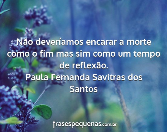 Não deveríamos encarar a morte como o fim mas sim como um tempo de reflexão.Paula Fernanda Savitras dos Santos